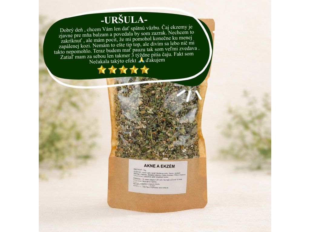 Trápi vás problematická pleť, akné alebo ekzém? Doprajte svojej pokožke podporu zvnútra pomocou bylín. Bylinný čaj na akné a ekzém je starostlivo zostavená zmes tradičných rastlín, ktoré pomáhajú podporovať prirodzenú očistu organizmu a prispievajú k zdravej a vyváženej pokožke.