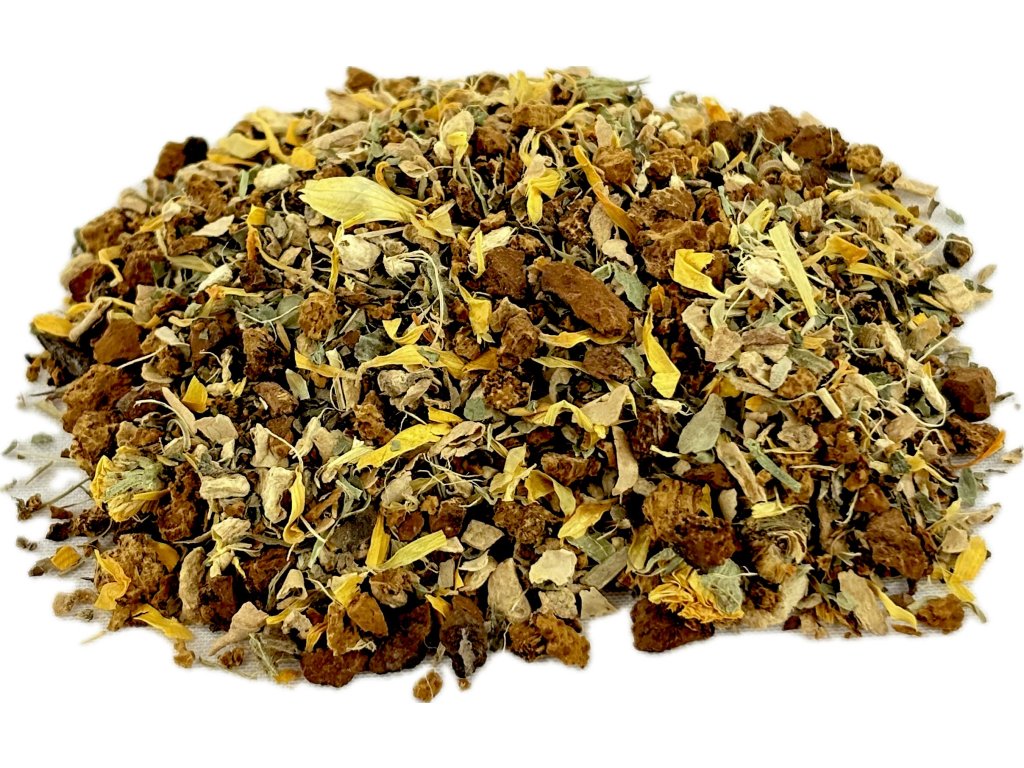 • Oregano prispieva k normálnej funkcii čriev a prirodzenej obranyschopnosti. • Zázvor podporuje trávenie, prispieva k normálnej funkcii imunitného systému a pomáha pri oxidatívnom strese. • Medovka lekárska prispieva k duševnej pohode, uvoľneniu a zároveň podporuje trávenie. • Nechtík lekársky má antioxidačné vlastnosti a priaznivo pôsobí na pokožku a sliznice. • Ríša vec šikmý (Chaga) je huba známa z tradičnej medicíny, s dlhodobým využitím najmä v oblasti imunitnej rovnováhy a vitality.