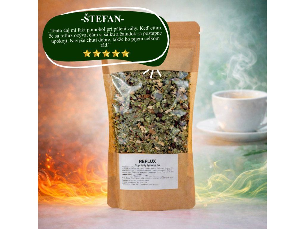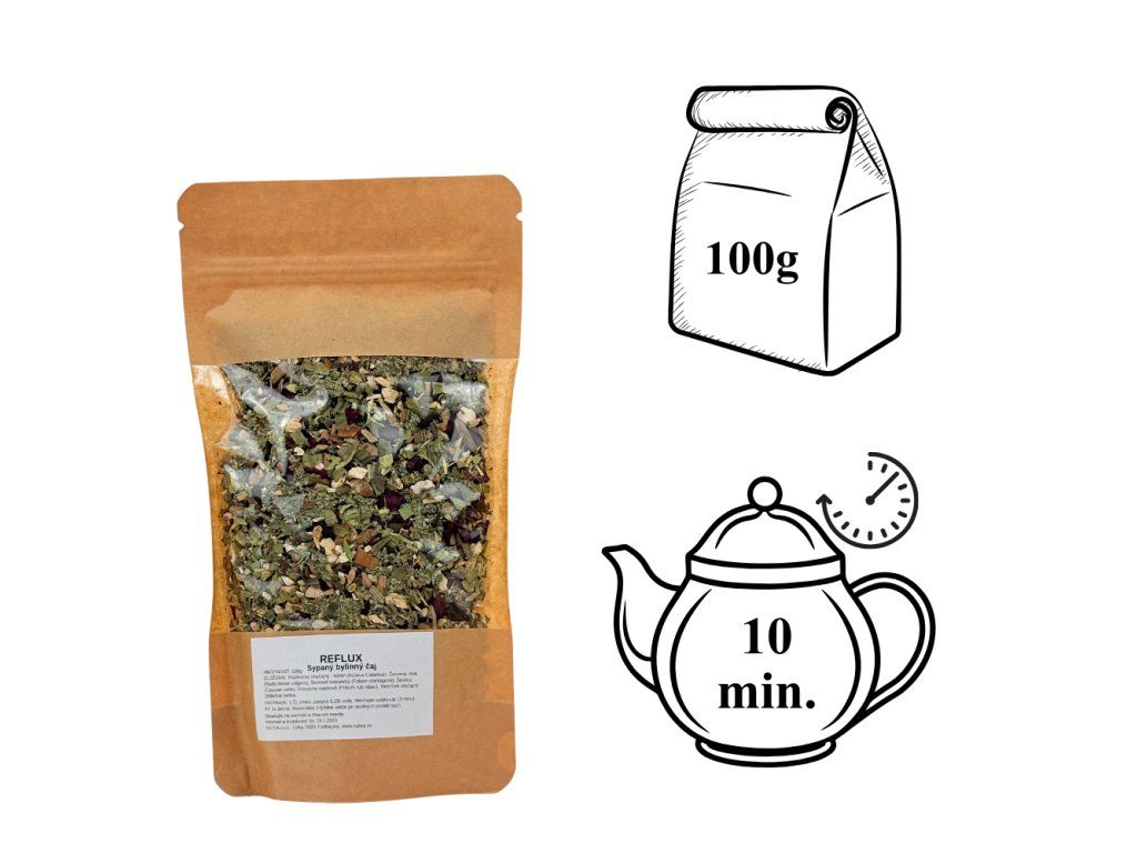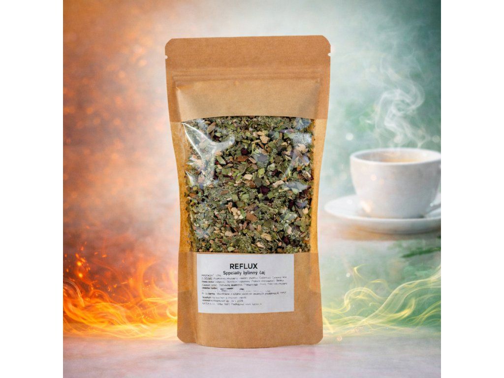 Bylinný čaj Reflux je starostlivo namiešaná zmes bylín a prírodných ingrediencií, ktoré sa tradične používajú na podporu trávenia a úľavu pri pálení záhy či refluxe. Kombinácia vybraných rastlín pomáha upokojiť tráviaci trakt, podporiť prirodzenú rovnováhu žalúdka a zmierniť nepríjemné pocity spojené s nadmernou tvorbou žalúdočnej kyseliny.