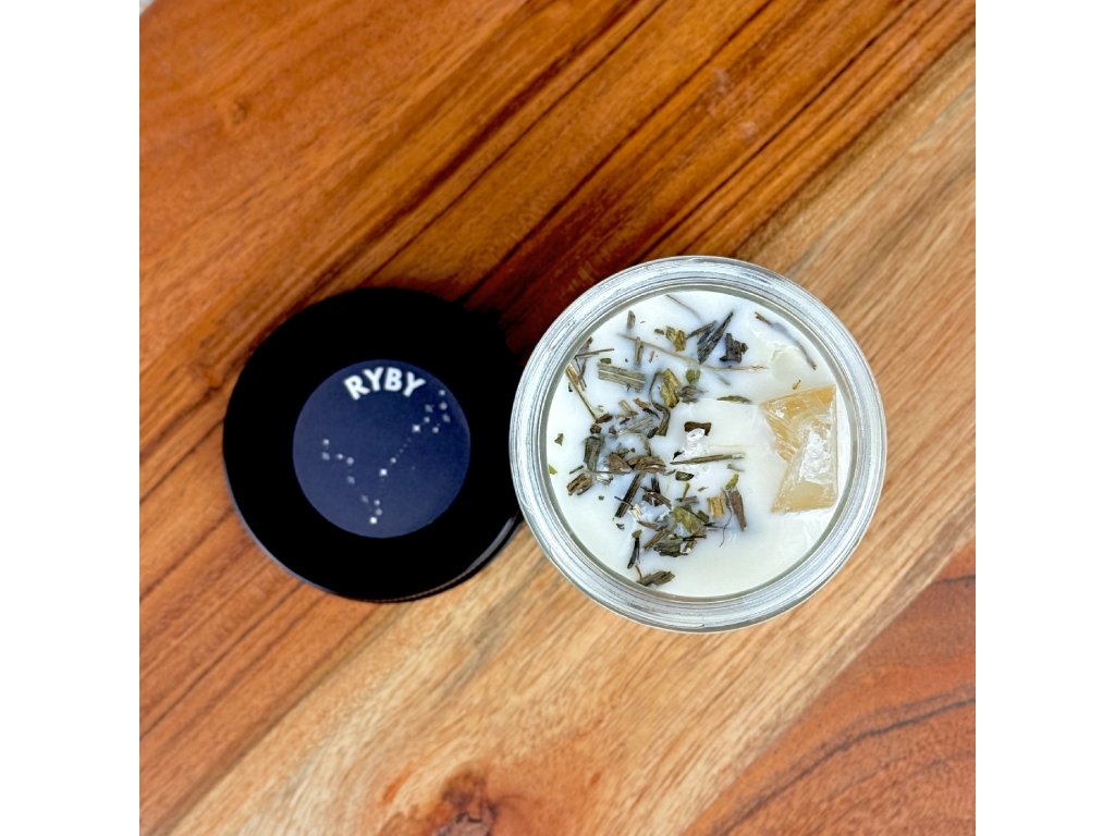 Ručne liata sójová sviečka je vytvorená pre znamenie Ryby. Kombinuje energiu kalcitu, ktorý podporuje optimizmus, vnútorný pokoj a jasnosť myslenia, s jemnou a očistnou silou skorocelu, ktorý pomáha udržiavať rovnováhu a ochranu energie. Sviečka podporuje intuíciu, duchovnú harmóniu a citovú stabilitu typickú pre Ryby.