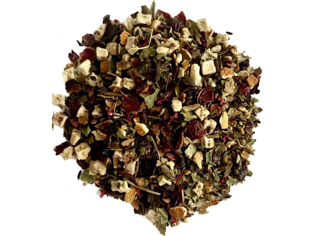 ZLOŽENIE: šípka, jabĺčko, ibištek, jahoda list, škorica, klinčeky, pomarančová kôra, čakanka koreň